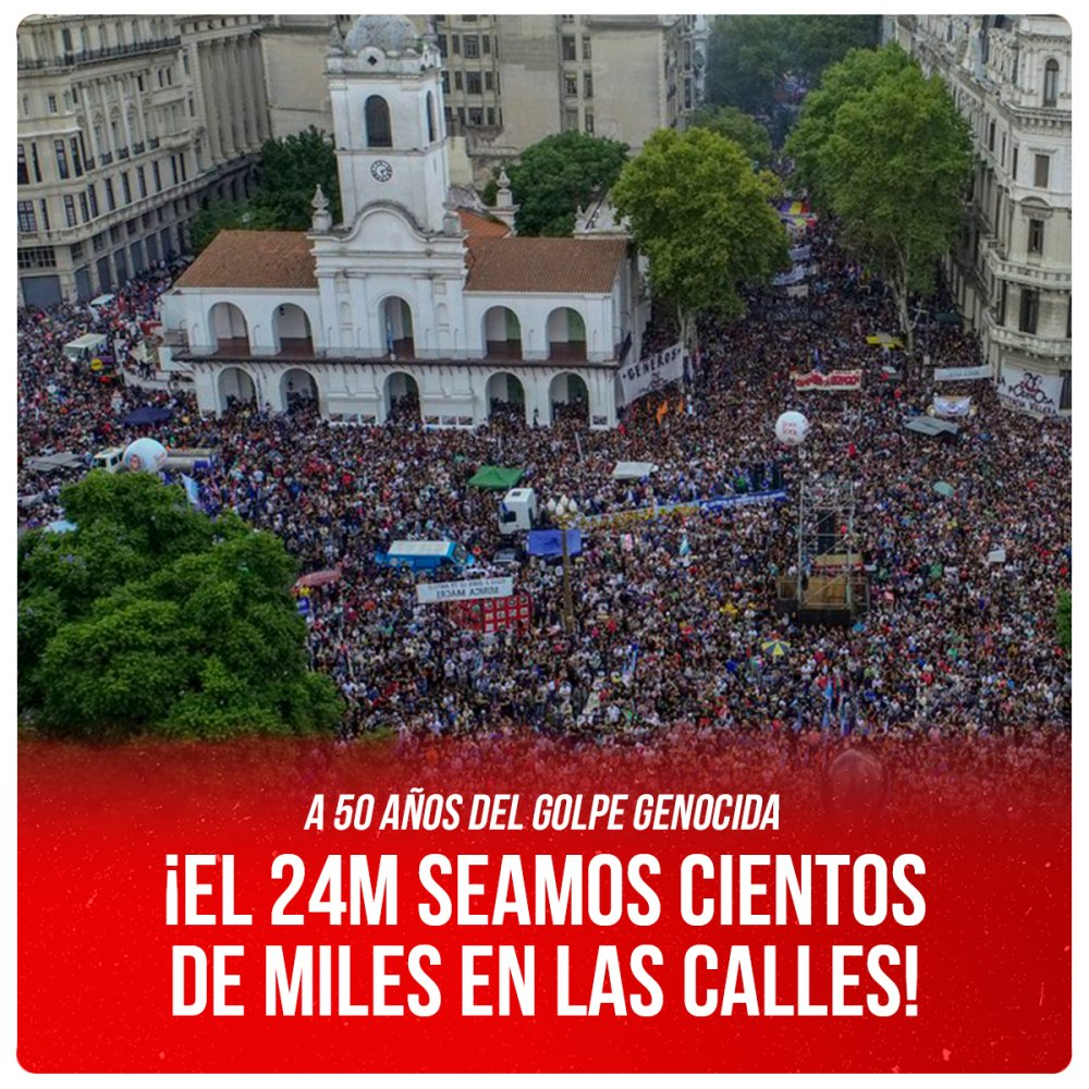 A 50 años del golpe genocida, estamos juntos nuevamente en esta histórica Plaza, y en todas las plazas del país, con profunda convicción, para reafirmar que la memoria se defiende luchando y porque sabemos que es necesario unir las luchas para fortalecerlas en tiempos difíciles.